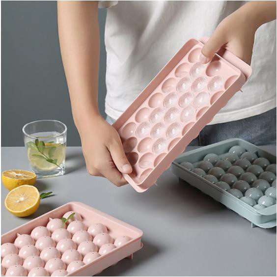 Khuôn thạch bi nhựa tròn làm hoa quả trái cây/ khuôn rau câu, khay đá viên tròn 33 viên ( màu ngẫu nhiên )
