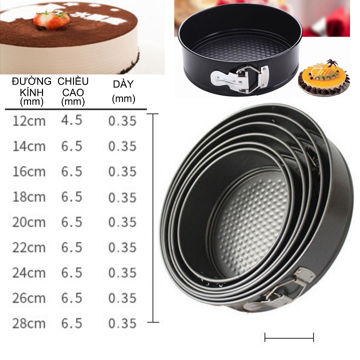 Khuôn bánh tròn là một dụng cụ không thể thiếu đối với bạn làm bánh. Hôm nay hãy tìm hiểu khuôn tròn đáy rời 18cm 20cm 22cm 24cm 26cm - một loại khuôn phổ biến được rất nhiều bạn lựa chọn sử dụng.Khuôn tròn đế rời ( hay còn gọi là khuôn springfrom) sẽ giúp lấy bánh dễ dàng hơn bên cạnh đó có một số loại bánh bắt buộc phải dùng khuôn đế rời như Mousse, Cheese cake, bánh kem sinh nhật bông lan GATO....