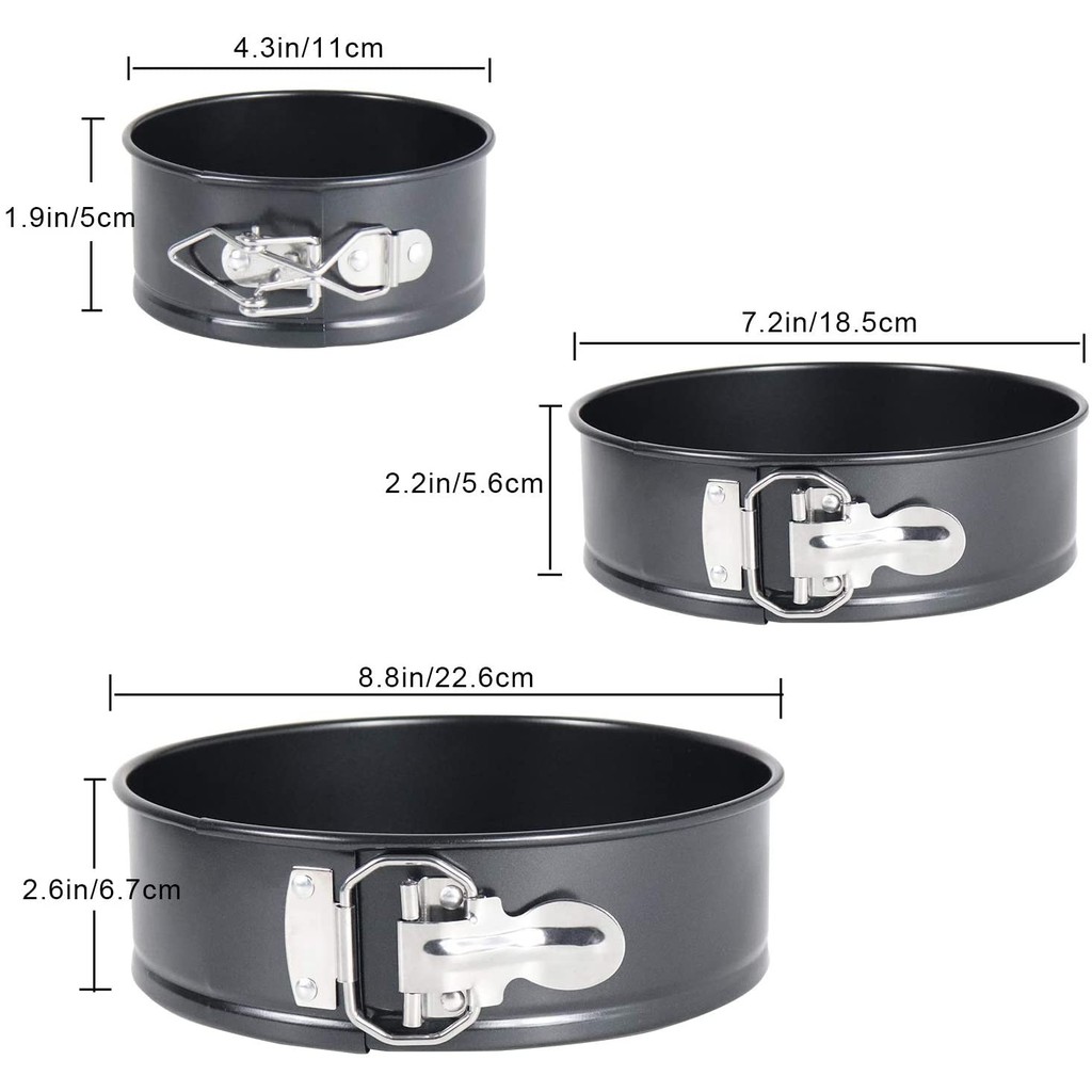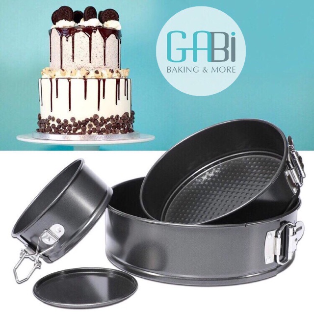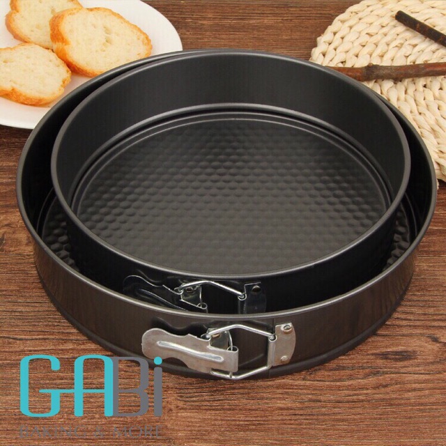 Khuôn springform chống dính với khoá chốt tiện lợi là loại khuôn được thiết kế tối ưu giúp lấy bánh ra dễ dàng, nhất là với những loại bánh mềm như mousse, cheesecake, tiramisu...Khuôn có 4 cỡ: