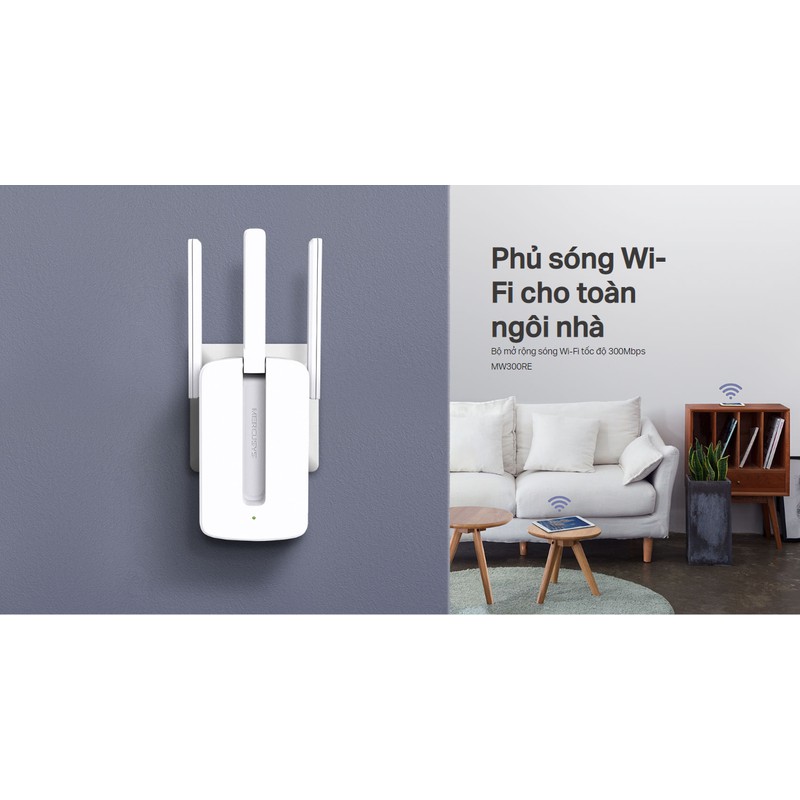 Bộ kích sóng Wi-Fi Mercusys MW300RE - Hàng Chính Hãng