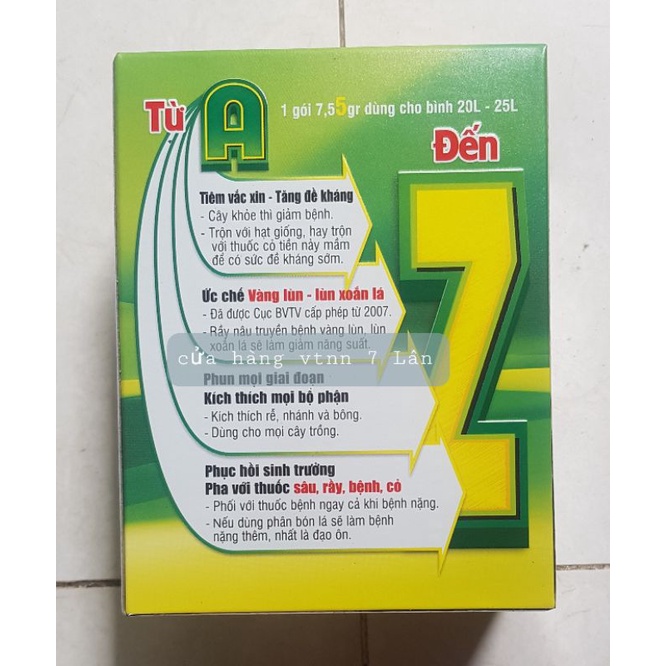 . Rau màu: giai đoạn cây con, khi cây ra tược non. Pha 1 gói 7.5g cho 20 lít nước.