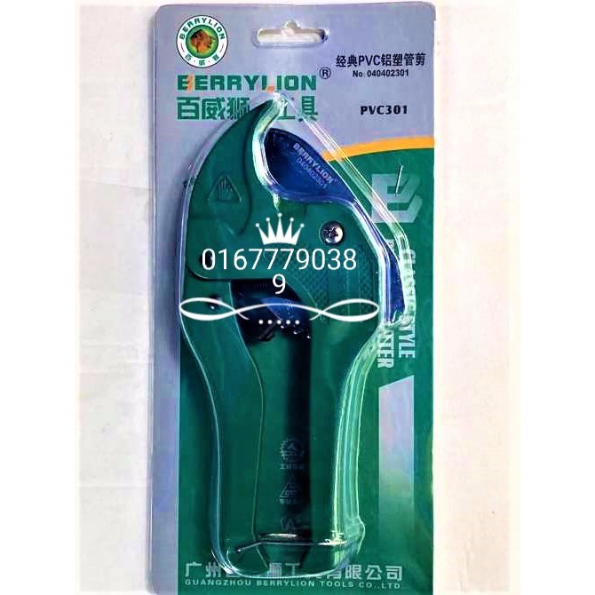 kìm cắt ống nhựa 42mm Berrylion PVC301 cán 190mm nhông lò xo kéo là dụng cụ chuyên dụng trong cắt ống nhựa PVC, CPVC,PE, ống cao su và các loại ống khác. Là một dụng cụ cần thiết cho người thợ sửa chữa nước và các loại đường ống có đường kính dưới 42mmKìm cắt ống nhựa 42mm PVC301 cán 195mm nhông lò xo kéo là sản phẩm của thương hiệu Berrylion, nhà sản xuất hàng đầu thế giới về dụng cụ cắt. Được làm từ thép Mangan không gỉ, rất sắc, có độ cứng cao, chống vênh. Được sử dụng rộng rãi, phổ biến trong công đoạn cắt các loại ống như PVC, PE, PU, ống cao su và một số loại đường ống khác