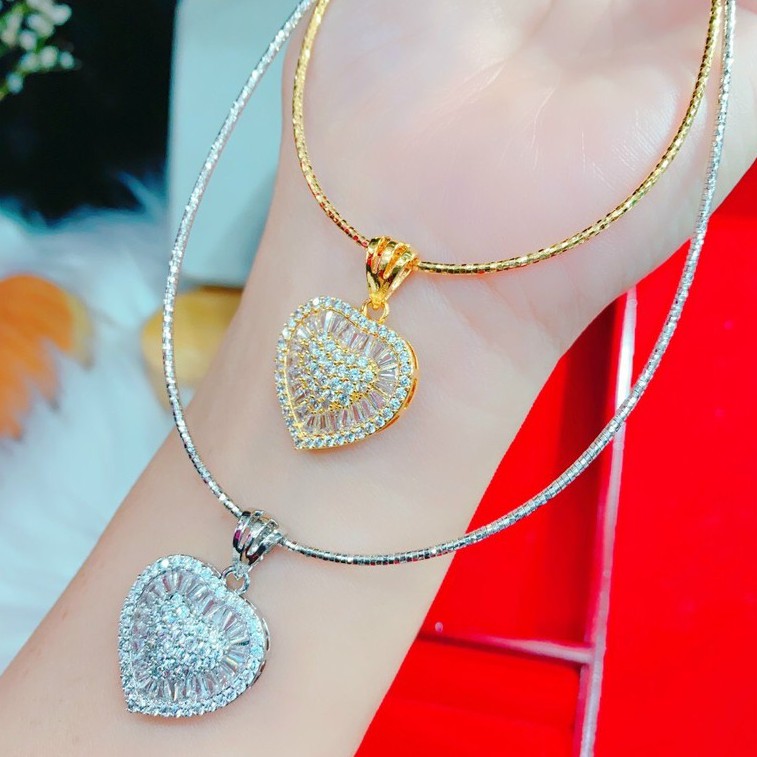 Kiềng Dạng Dẻo 1 Bính Mặt Trái Tim 2 Tầng Tỏa Hào Quang - Bền Màu Không Dị Ứng