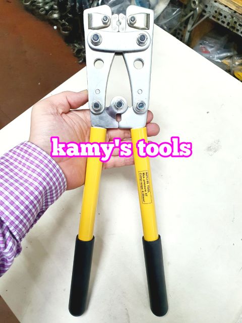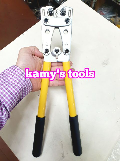 Kìm bấm cos hhyj-50 6mm2-50mm2 là dụng cụ bấm cos điện bằng tay bằng cơ sử dụng để bấm ép các đầu cos điện có đường kính từ 6, 10, 16, 25, 35, 50mm2 cho ra hình lục giác sau khi bấm. Kìm bấm cos hhyj-50 6mm2-50mm2 được sản xuất tại trung quốc với thương hiệu tlp được nghiên cứu và chế tạo để bấm ép các đầu cos điện theo cơ chế trợ lực với tay cầm đủ dài cho lực tác động lên không quá mạnh nhưng lực ép rất lớn giúp cho các mối ép trở nên cứng cáp và rất chặt không bị lỏng lẻo. Để đổi các khuôn ép từ nhỏ đến lớn ta chỉ việc bấm vào chốt để mở khóa xoay khuôn ép theo kiểu vòng tròn được đánh số khuôn từ 6 đến 50 giúp cho việc sử dụng kìm bấm cos hhyj-50 6mm2-50mm2 trở nên dễ dàng hơn bao giơ hết.Giá ELA