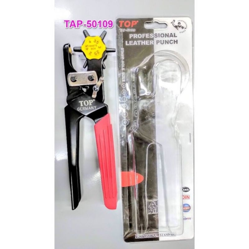 #kìmKìm bấm lỗ dây nịt thắt lưng Top K6012A kèm 100 khoen dùng để đục lỗ , đột lỗ , bấm lỗ trên dây nịt , dây thắt lưng , dây da đeo đồng hồ hay trên các bìa giấy . Kìm bấm lỗ dây nịt thắt lưng Top K6012A kèm 100 khoen có thể đặt được 6 kích cỡ là 1.5mm , 2.5mm , 3.3mm , 4.1mm , 4.5mm , và bấm lỗ giày da đi kèm 100 khoen , được thiết kế theo kiểu bấm cộng lực giúp cho việc bấm đột đục lỗ trở lên dễ dàng hơn bao giờ hết . Kìm bấm lỗ dây nịt thắt lưng Top K6012A kèm 100 khoen được làm bằng hợp kim thép được tôi luyện độ bền rất cao ngoài ra ra cán kìm được bọc lớp cao su cách điện giúp việc bấm đột lỗ trở nên nhẹ nhàng hơn và không bị đau tay khi phải sử dụng trong một thời gian dài .