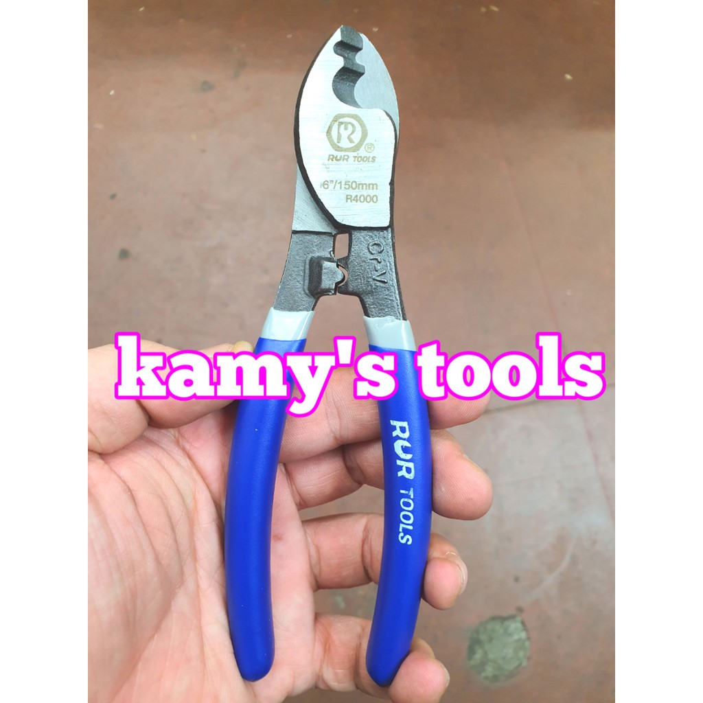 Kìm cắt cáp 6 inch Rur R4000 thương hiệu Rur tools nổi tiếng sản xuất các công cụ dụng cụ cầm tay chất lượng cao có chiều dài là 150mm được gia công bằng hợp kim thép cr-v được tôi luyện nhiệt độ cao giúp cho độ cứng của thép đặc biệt là phần lưỡi cắt có sắc bén chuyên cắt các loại dây điện, cáp điện lõi đồng.Giá GSon