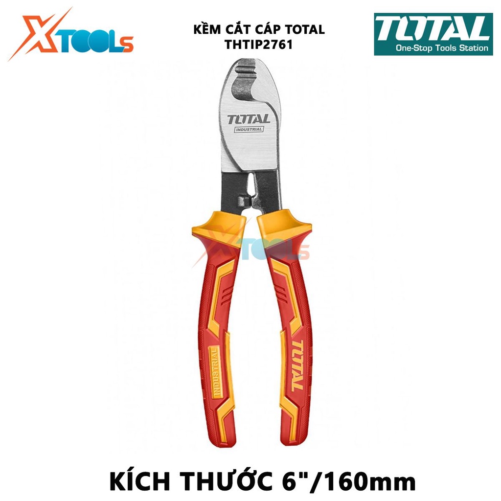 Nhà cửa & Đời sống > Dụng cụ & Thiết bị tiện ích > Dụng cụ > Kìm || Kìm cắt cáp cách điện TOTAL THTIP2761 | Kềm cách điện Kích thước: 6"/ 160mm, Đầu kềm được mạ đen và đánh bóng, Tay cầm cCòn hàng