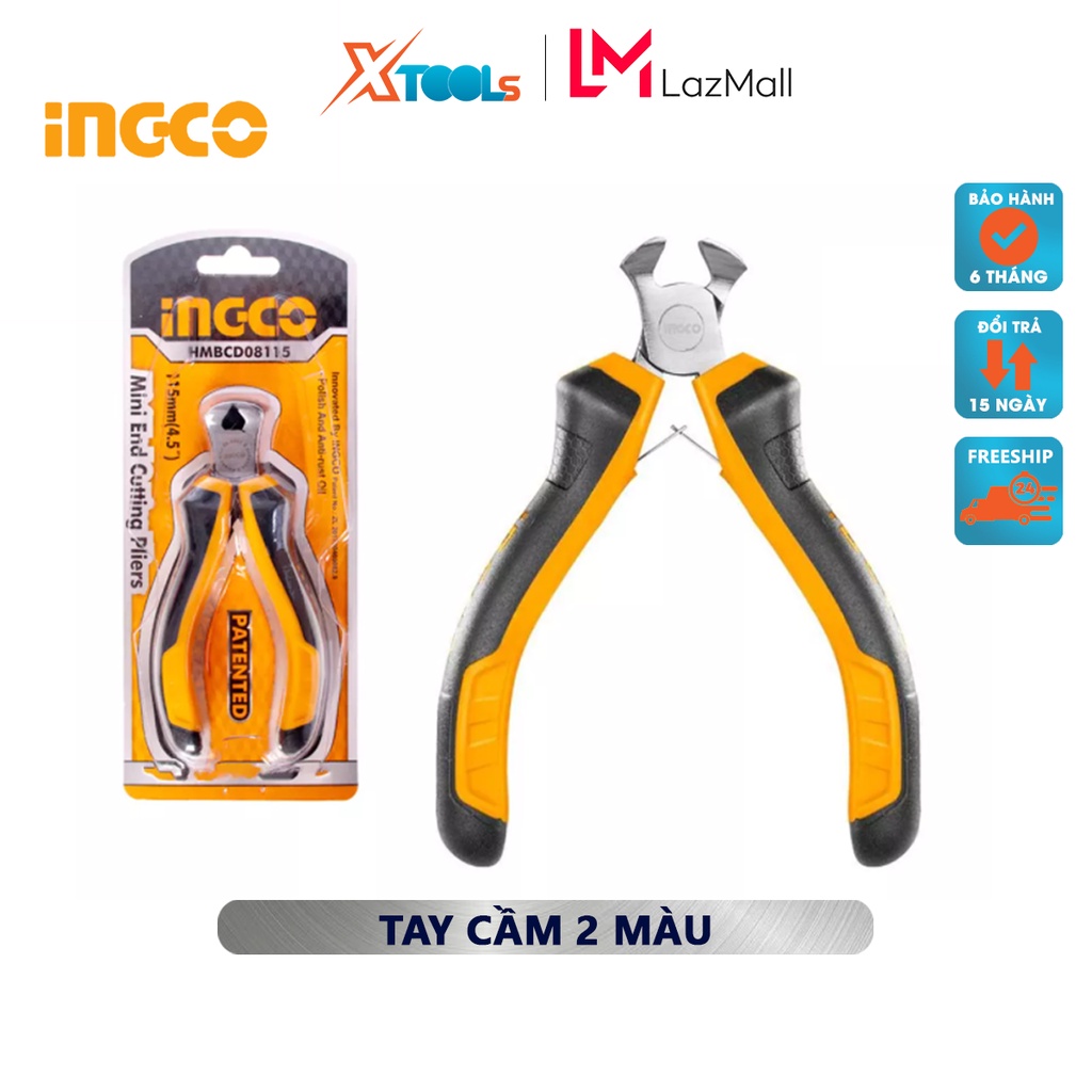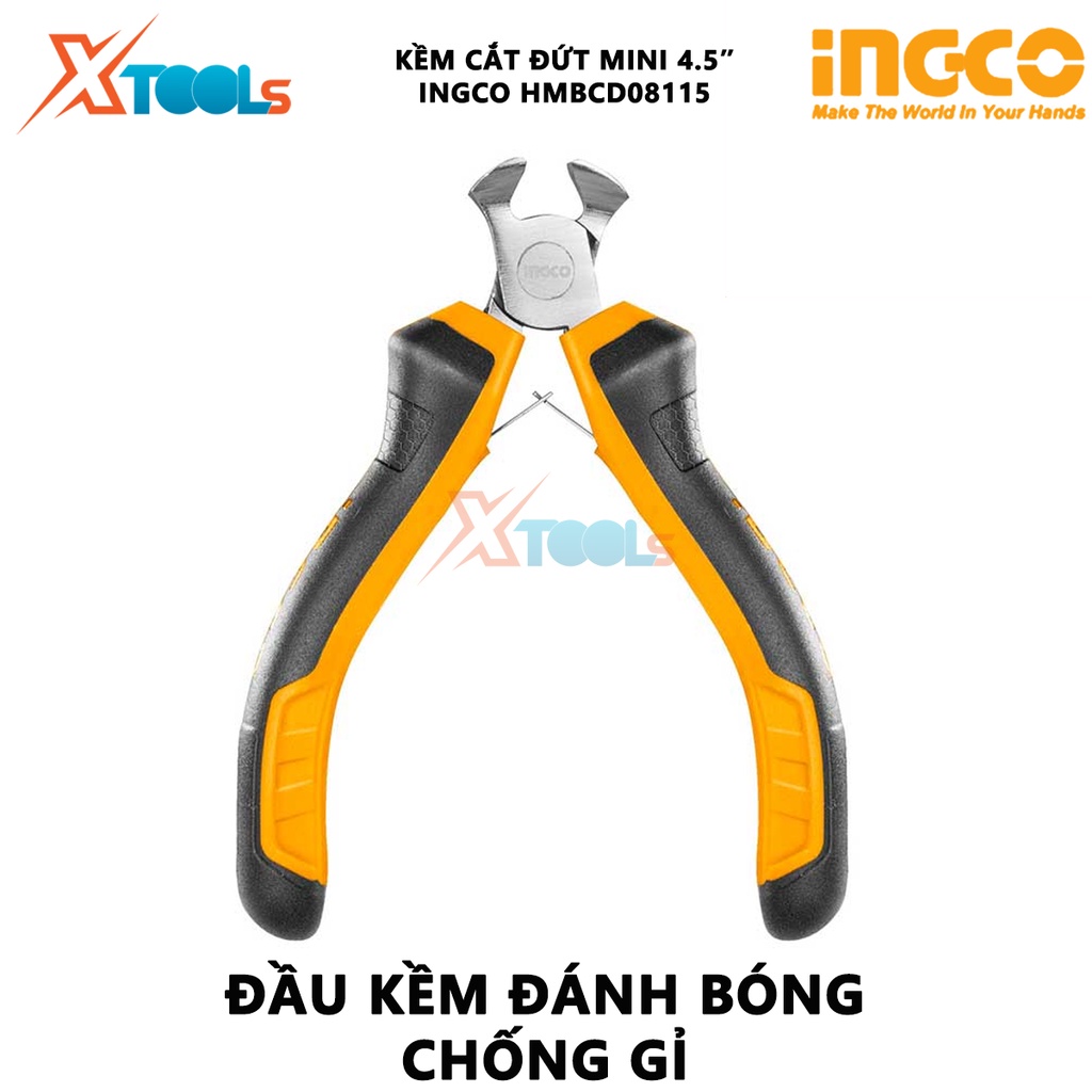 Giới thiệu Kìm cắt đầu mini INGCO HMBCD08115 kềm cắt mini Kích thước 4.5"/ 115mm Đầu kềm được đánh bóng và chống gỉ cắt, tuốt dây đ