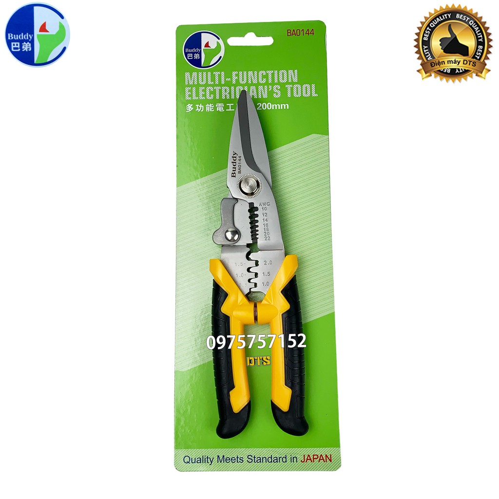 Kìm cắt dây đa năng cao cấp Nhật Bản 3 trong 1 Buddy BA0144 8inch/200mm (Cắt cáp-Tuốt dây-Bấm cos) - Standard JAPAN
