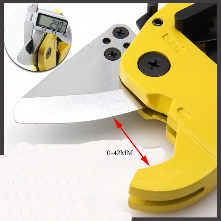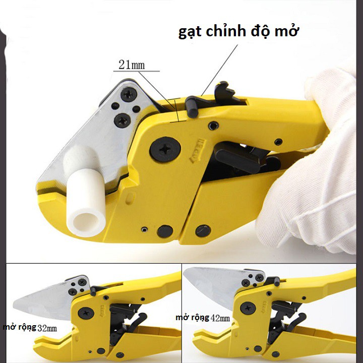 kéo có thiết kế nấc gạt để chuyển cỡ miệng cắt từ 32mm-42mm