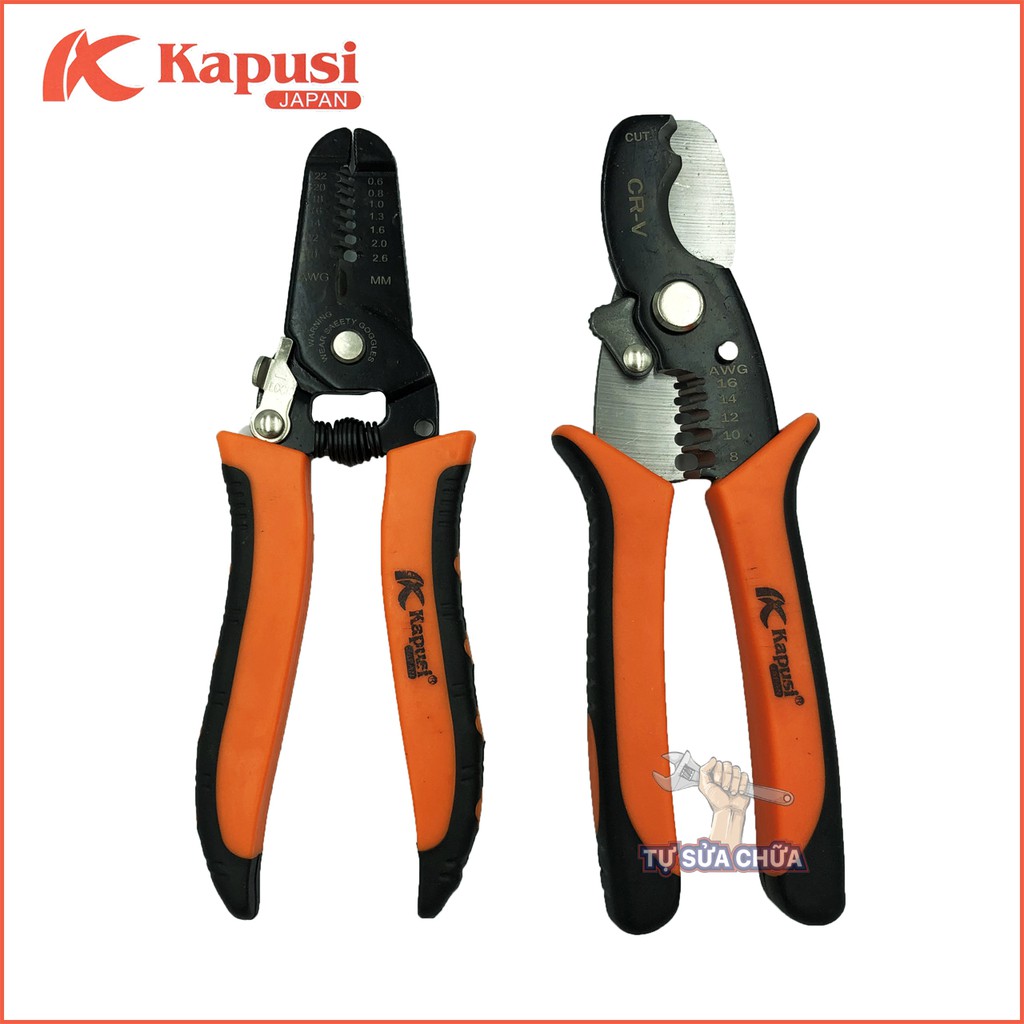 Nhà cửa & Đời sống > Dụng cụ & Thiết bị tiện ích > Dụng cụ > Kìm || Kìm cắt tuốt dây điện đa năng Kapusi Japan K-9100 và K-9103 có khóa an toàn, lò xo trợ lựcCòn hàng