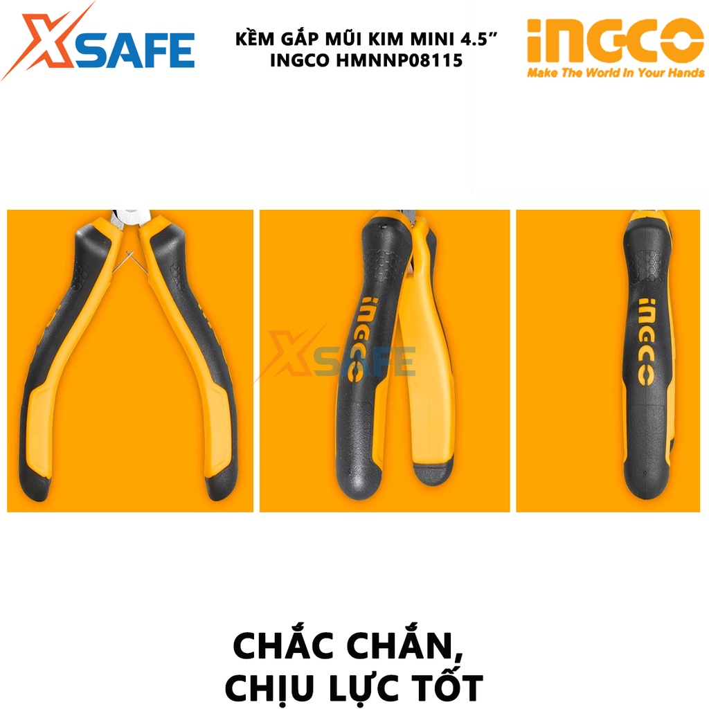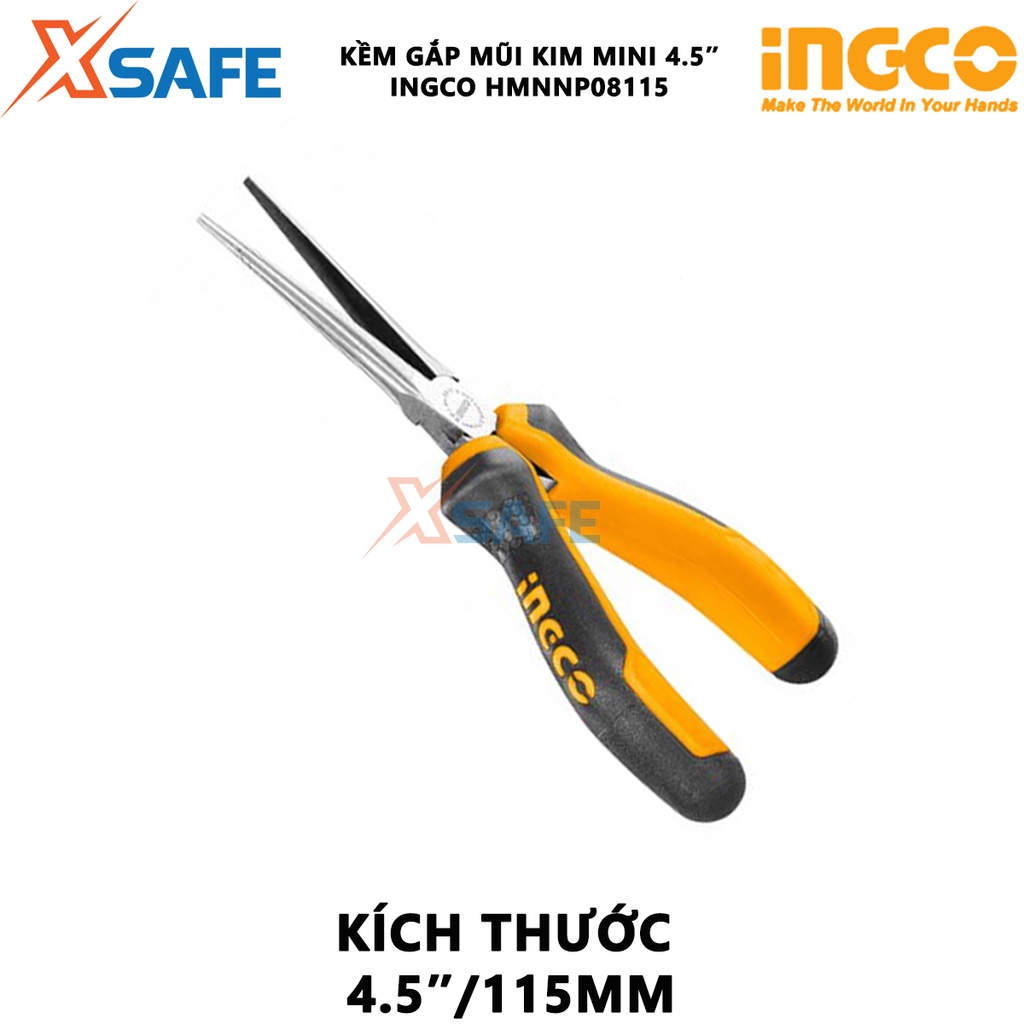 Giới thiệu Kìm gắp mũi kim mini INGCO HMNNP08115 4.5 inch Kềm mini đầu kềm được đánh bóng và chống gỉ, tay cầm hai màu - [XSAFE]