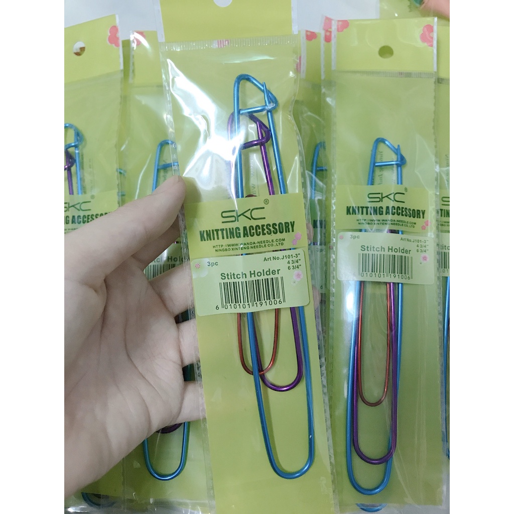 Kim giữ mũi đan (25k/set 3 cái)Kim giữ mũi đan dùng để giữ các mũi đan nếu bạn muốn đan các phần khác, sau đó có thể quay lại đan tiếp các mũi đã giữ.