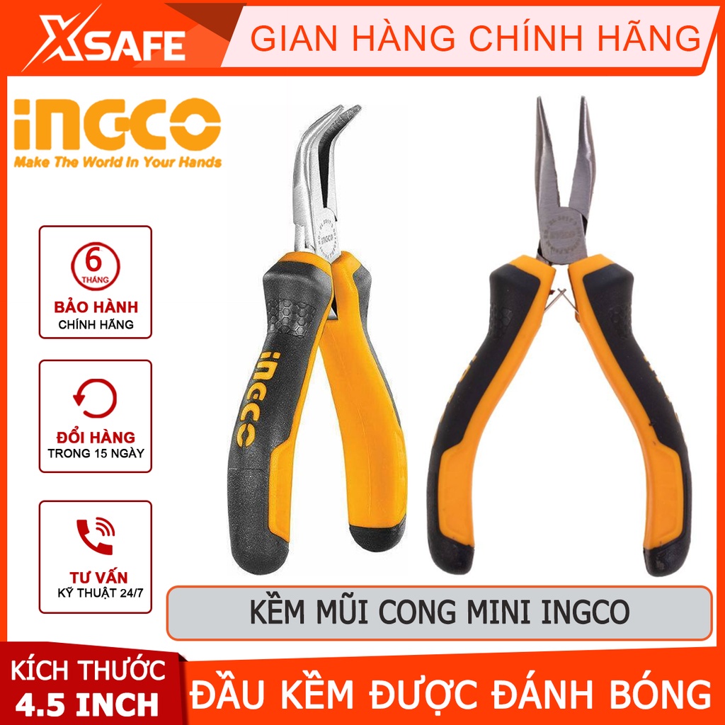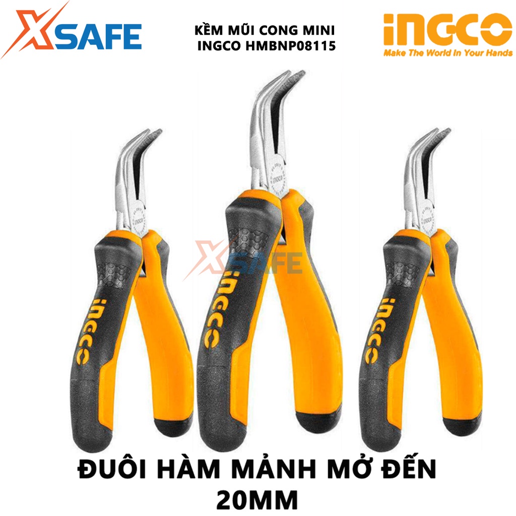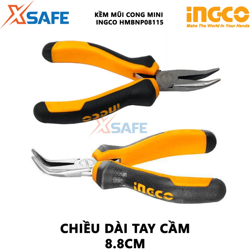 Giới thiệu Kìm mũi cong mini INGCO HMBNP08115 Kềm mỏ cong đầu kềm chống gỉ được đánh bóng, tay cầm hai màu - XSAFE