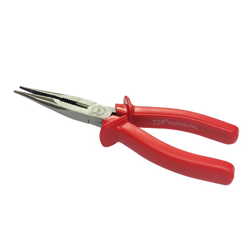 Kìm Nhọn cán Đỏ hiệu TOP, được sản xuất tại Đài Loan. Với thiết kế mũi kìm nhọn và dài, sản phẩm này phù hợp sử dụng tại các vị trí nhỏ hẹp hoặc nằm sâu bên trong chi tiết.Đầu kìm được chế tạo từ thép tốt, và được xử lý nhiệt đặc biệt, nhằm gia tăng độ cứng cho đầu và lưỡi cắt của kìm.