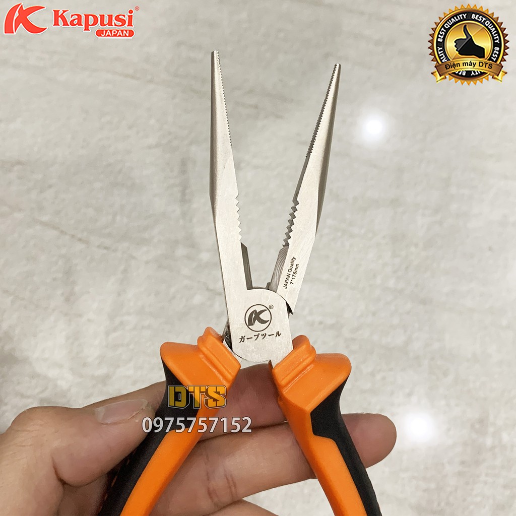 Kìm nhọn công nghiệp kiểu Nhật Kapusi JAPAN 7 inch, hợp kim thép Niken cao cấp, thiết kế tiên tiến tiết kiệm 30% lực bấm