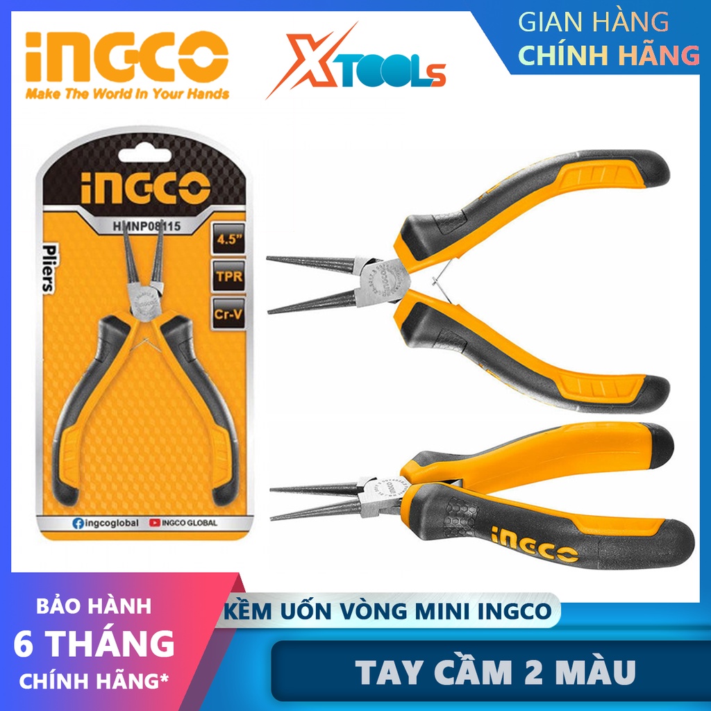 Kìm nhọn uốn vòng mini INGCO HMNP08115 | kềm uốn vòng Kích thước 4.5"/ 115mm Đầu kềm được đánh bóng và chống gỉ kẹp, gi