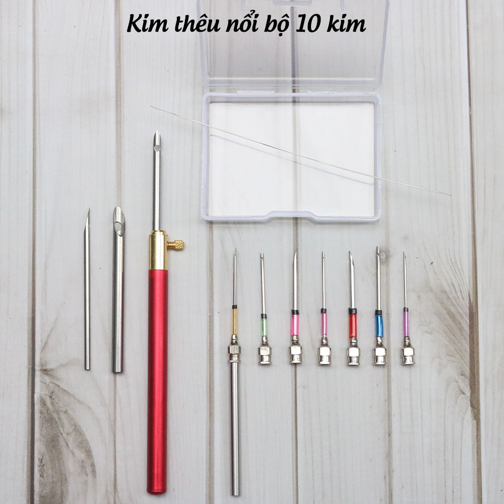 Kỹ thuật thêu dùng punch needle hay còn gọi là thêu xù, thêu nổi, thêu nhung... Với kim thêu nổi, bạn có thể tạo ra các sản phẩm thêu nổi độc đáo.Bạn có thể thêu nổi bằng chỉ thêu hoặc sợi len tùy vào kích thước của kim.