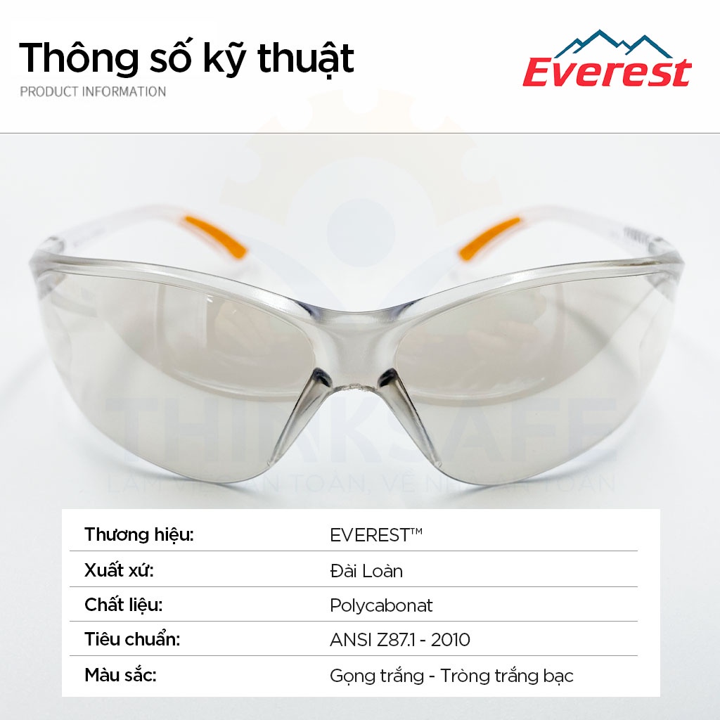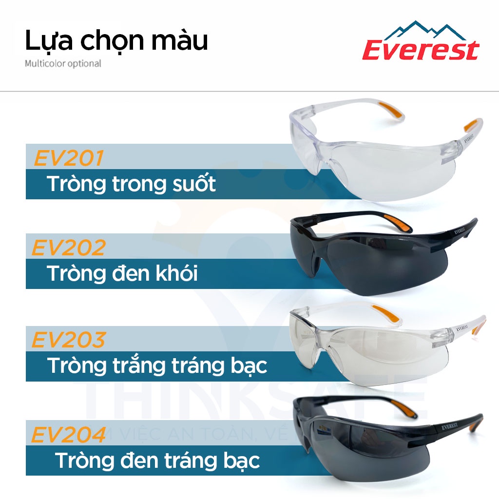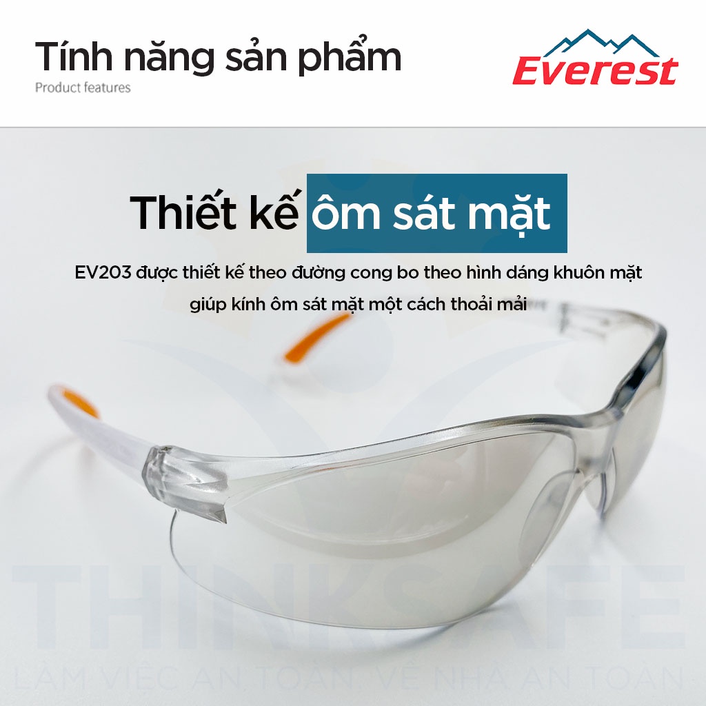 Kính chống bụi đi đường Thinksafe EV203 chắn bụi đa năng, chống tia bắn, chống bụi, cao cấp, trang bị bảo hộ lao động.✨Kính bảo hộ EV203 thương hiệu EVEREST có tròng kính bằng polycar bonate chống va đập, chống vỡ vụn và chặn đến 99% tia cực tím gây hại cho mắt. Kính có chứng nhận EN166 Châu Âu, Tính năng chống đọng sương, thêm lớp phủ bạc chống chói rất tốt.