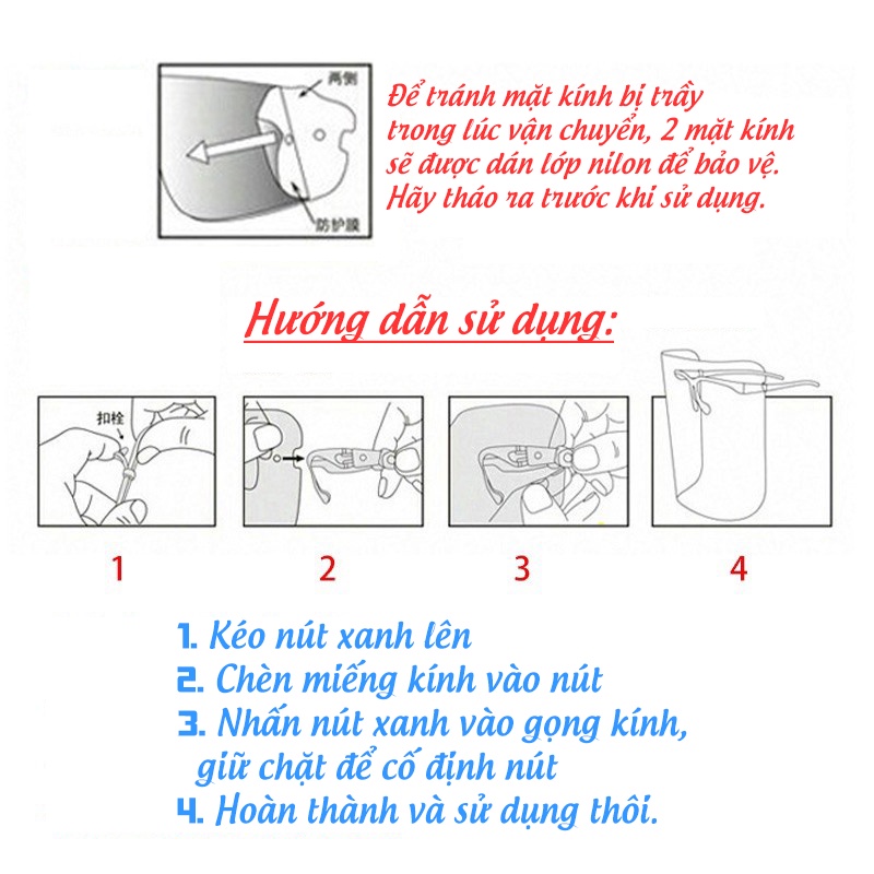 Kính chắn giọt được cấu tạo từ gọng kính trong suốt, bằng nhựa cao cấp có khả năng đàn hồi cao, phù hợp với mọi khuôn mặt nên dùng được cho trẻ từ 2 tuổi đến người già.