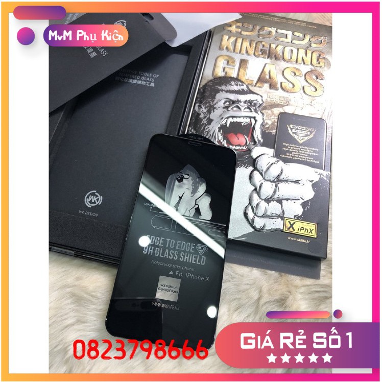 - Kính cường lực KING KONG WKDESIGN hàng XỊN cho TẤT CẢ CÁC ĐỜI IPHONE có độ cứng đạt chuẩn 9H bảo vệ an toàn cho màn hình iPhone tốt hơn gấp 5 lần các loại kính cường lực thế hệ cũ.
