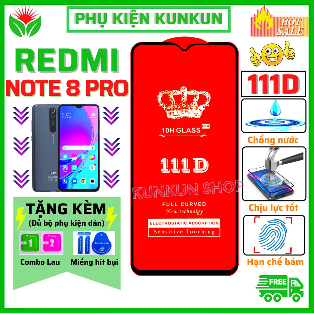 Kính cường lực Redmi Note 8 Pro - Dán Full màn hình 111D - Độ trong suốt cực cao - Chống bám vân tay tốt cho điện thoại