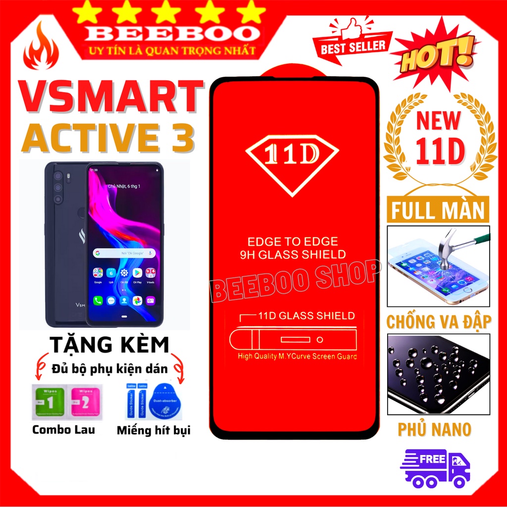Điện Thoại & Phụ Kiện > Phụ kiện > Miếng dán màn hình || Kính Cường Lực Vsmart Active 3 - Siêu chuẩn mới - Full màn hình 11D và trong suốt - Độ cứng 9H [Free Ship 50K]Còn hàng