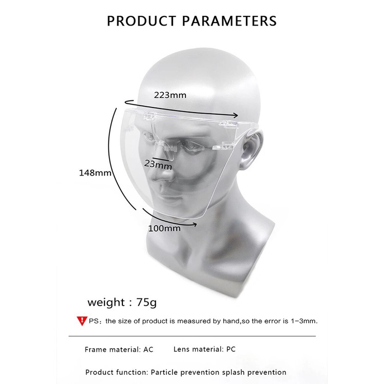 - Kính có thể tháo màn kính ra khi không cần dùng đến, màn chắn nhựa phủ hết khuôn mặt, bảo vệ toàn bộ khuôn mặt.