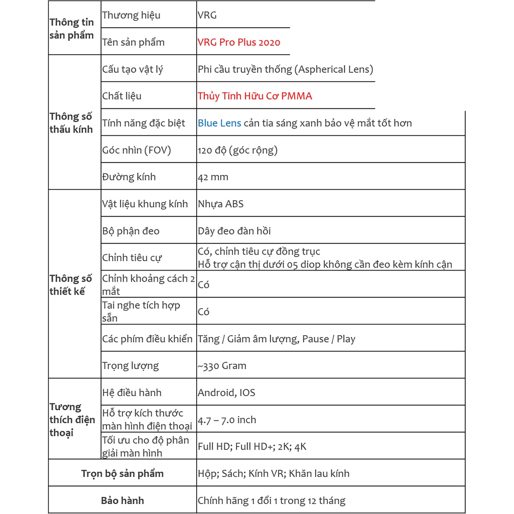 Kính thực tế ảo 3D VRG Pro Plus 2020 Bluelens cho iphone, samsung hỗ trợ màn hình 7 inch