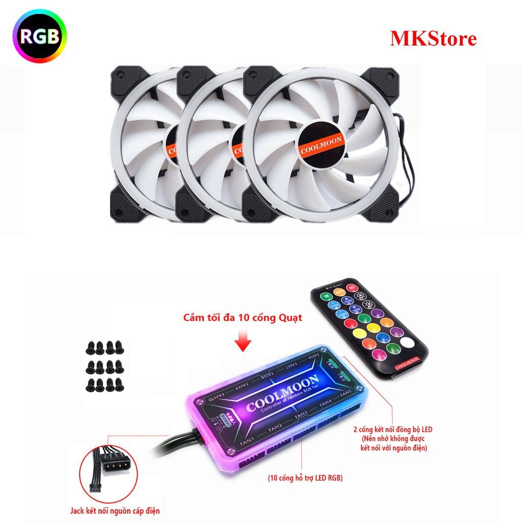 Máy tính & Laptop > Linh Kiện Máy Tính > Quạt và Tản Nhiệt || Bộ kit 3 Fan Led RGB + Hub COOLMOONCòn hàng