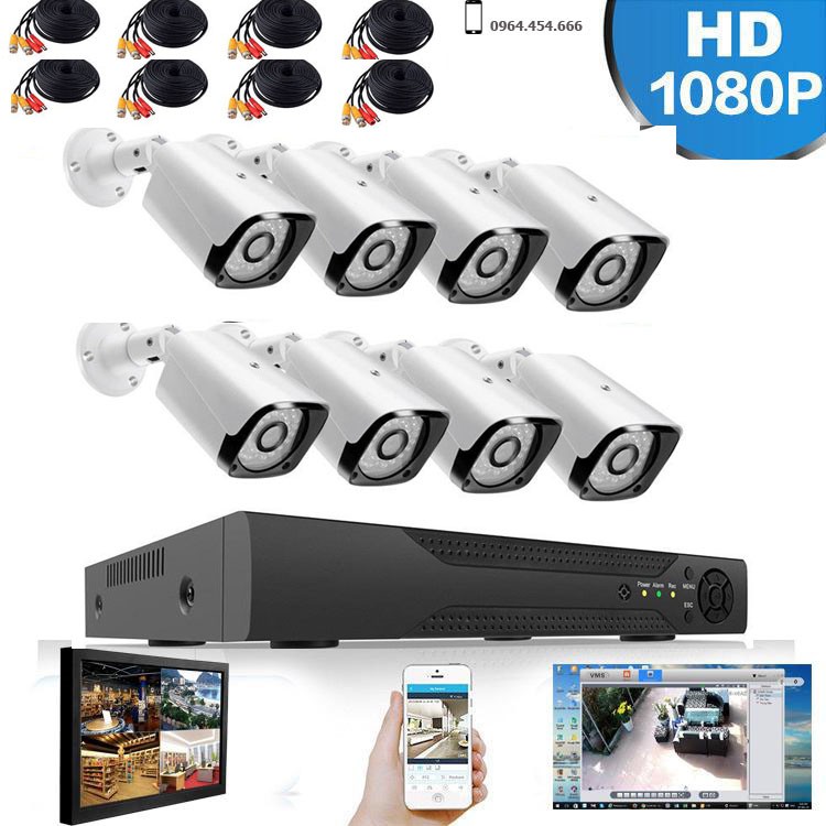 Trọn bộ 8 mắt Camera giám sát AHD Full HD 1080P và đầy đủ phụ kiện lắp đặt