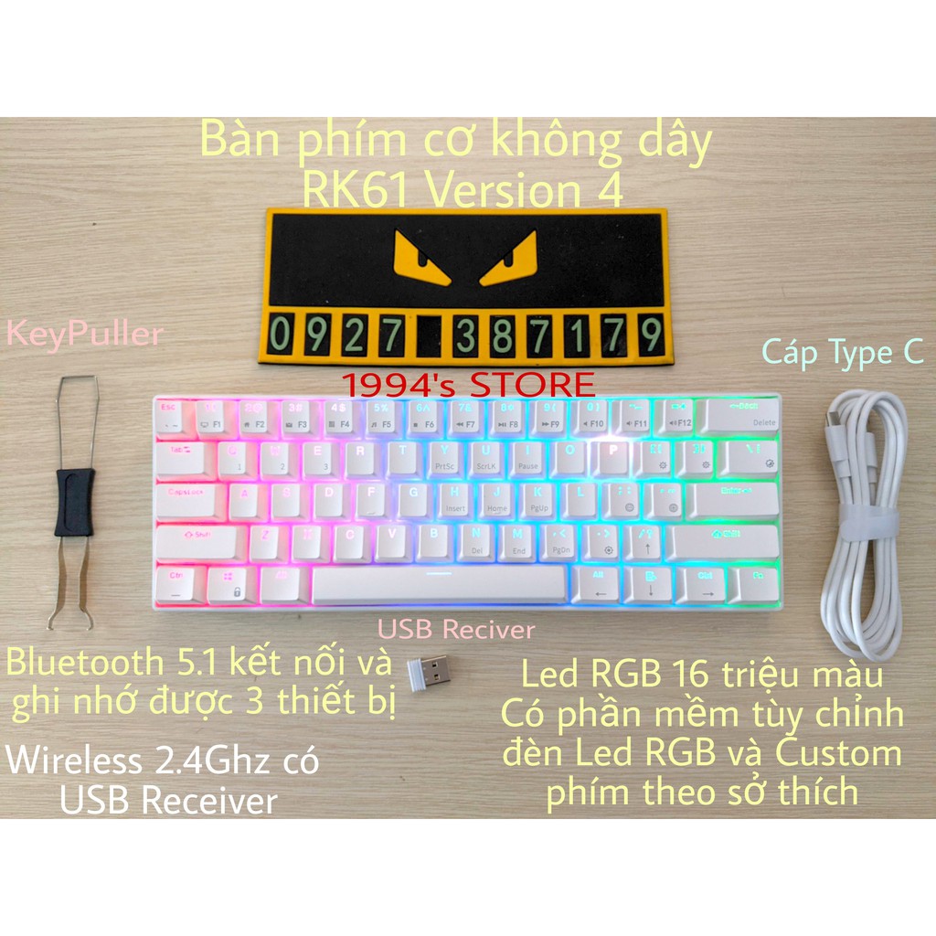 Giới thiệu Bộ Kit Bàn Phím Cơ RK61 Version 4.0 HOTSWAP - Type C - Bluetooth 5.1 - Wireless 2.4G - Phần mềm Custom Led RGB