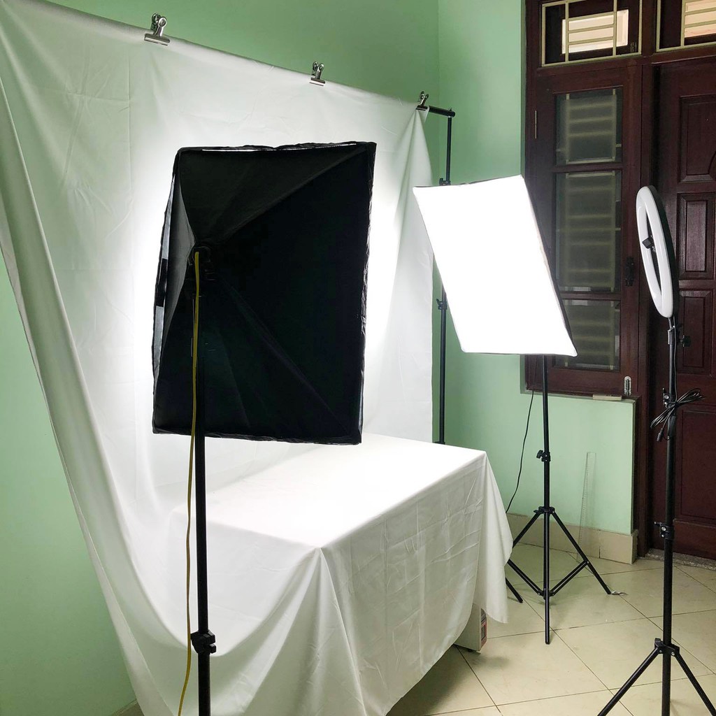 - 01 Chụp đèn kích thước 50x70cm kèm tấm vải trắng làm mềm ánh sáng