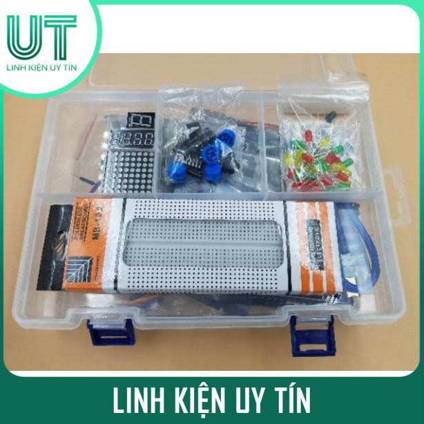 Bộ thí nghiệm Arduino là bộ kit được trang bị nhằm mục đích hướng tới các đối tượng mới bắt đầu tìm hiểu về lập trình về Arduino tương đối đơn giản và dễ tiếp cận. Khi các bạn không biết bắt đầu từ đâu thì bộ thí nghiệm sẽ cấp cho bạn các module chính và ngoại vi cơ bản kèm theo phục vụ cho học tập nghiên cứu và phát triểnMột KIT Arduino Uno R3 và một số lượng lớn các Module cần thiết sẽ giúp bạn xây dựng các Dự án sáng tạo . Đặc biệt là các bạn mới tiếp xúc và làm quen với Arduino, muốn đi từ Cơ bản đến Nâng cao