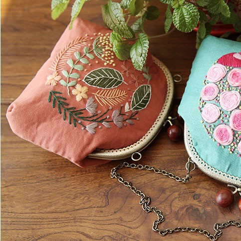 Bộ kit tập thêu đầy đủ nguyên liệu cho người mới bắt đầu có thể tự tay thêu và khâu một chiếc túi xinh cho bản thân.