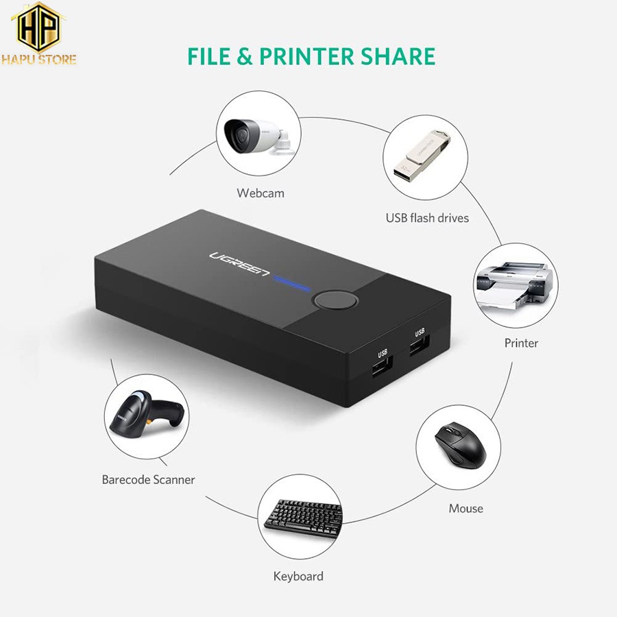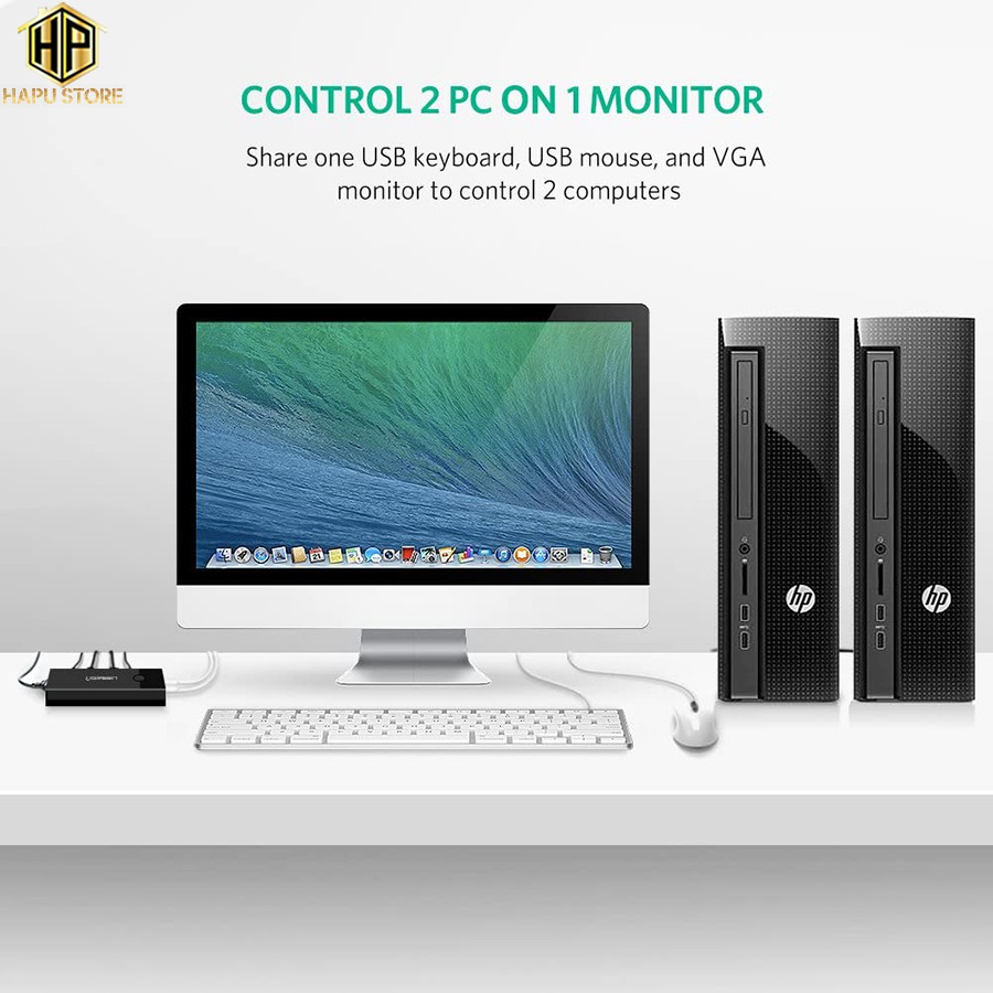 Giới thiệu [Mã 254ELSALE giảm 7% đơn 300K] Bộ KVM Switch USB Ugreen 30357 - 2 máy tính chung 1 màn hình cao cấp - Hapustore