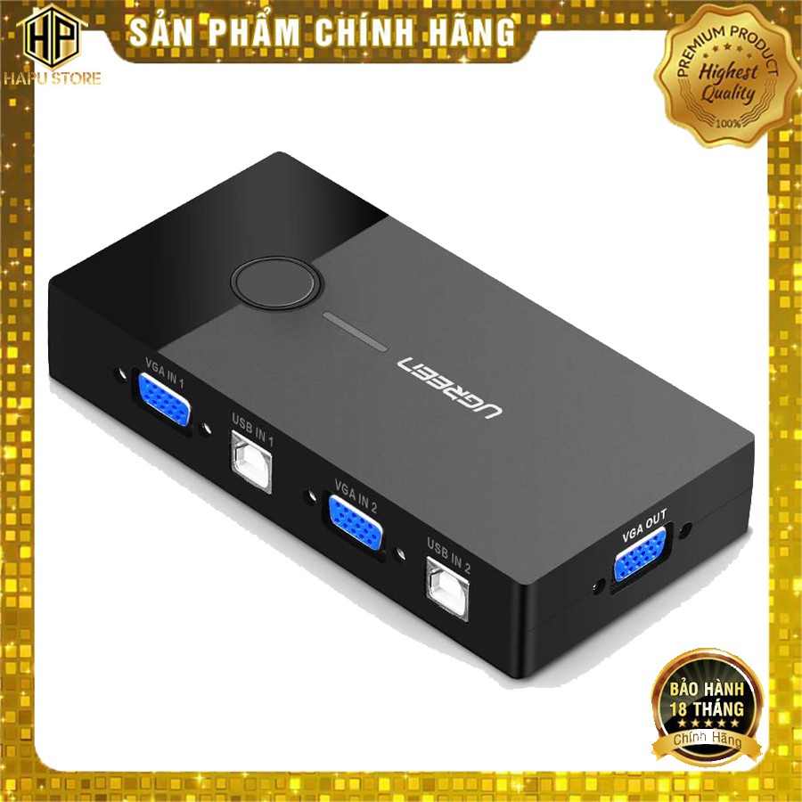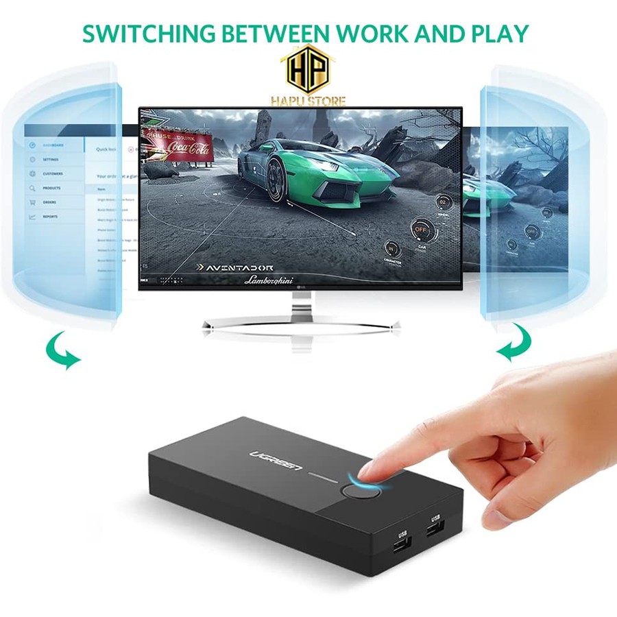 [Mã 254ELSALE giảm 7% đơn 300K] Bộ KVM Switch USB Ugreen 30357 - 2 máy tính chung 1 màn hình cao cấp - Hapustore