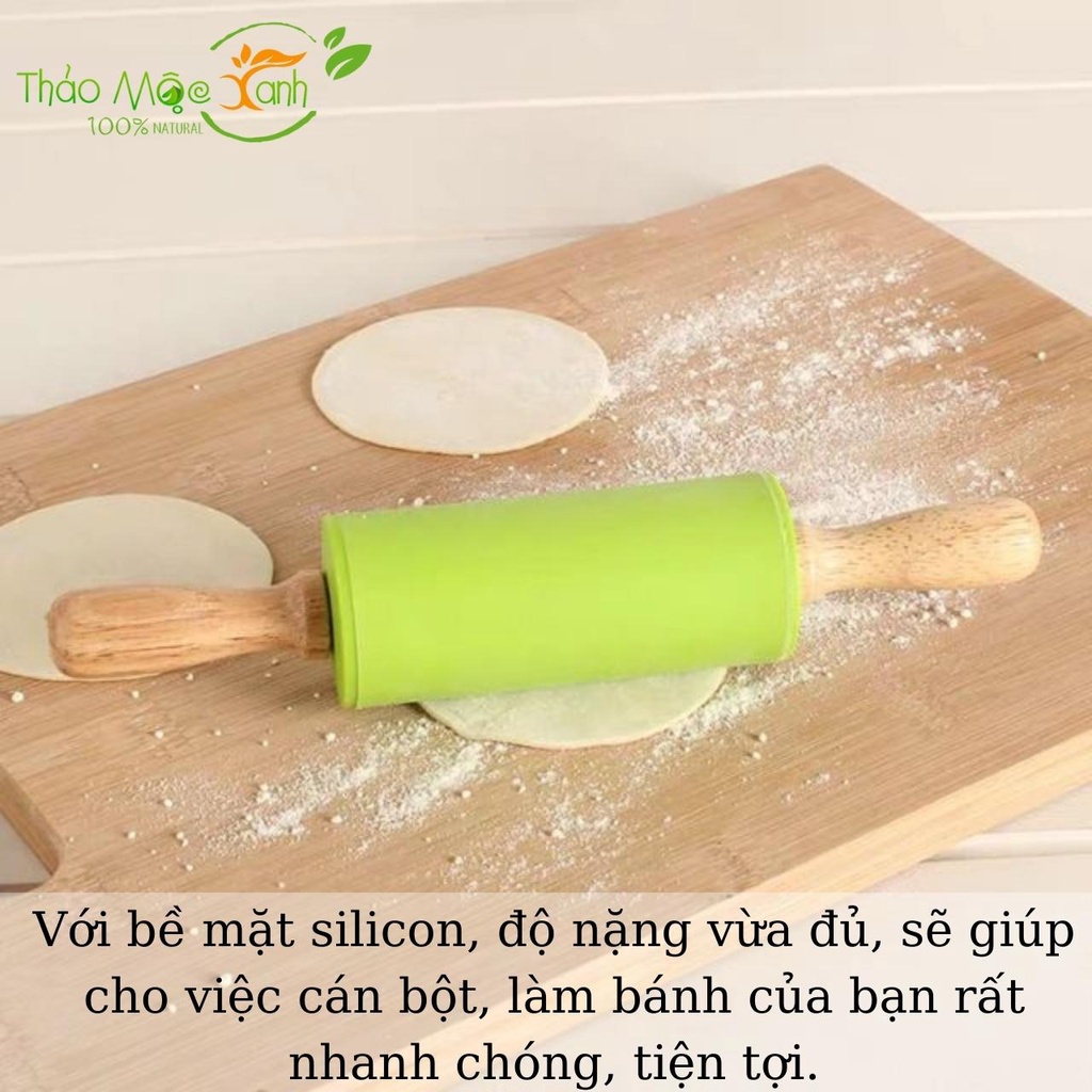 Được làm bằng chất liệu silicone cao cấp tự nhiên, bền đẹp, nhẵn bóng. Với bề mặt láng bóng, độ nặng vừa đủ, sẽ giúp cho việc cán bột, làm bánh của bạn rất nhanh chóng, tiện tợi.Được thiết kế với tay cầm bằng gỗ chắc chắn tạo sự thoải mái, bạn có thể tác động lực tối đa.