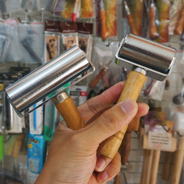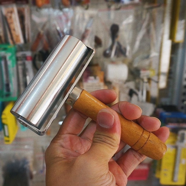 Cây lăn giúp ép bề mặt da khi dán keo, giúp keo dính đều.Thay vì dùng búa gõ vừa mệt vừa chẳng đều, anh em dùng cây lăn này thì hết bài. Cán bằng gỗ và đầu thép láng bóng giúp người dùng vừa chắc tay, lại chẳng trầy mặt da.