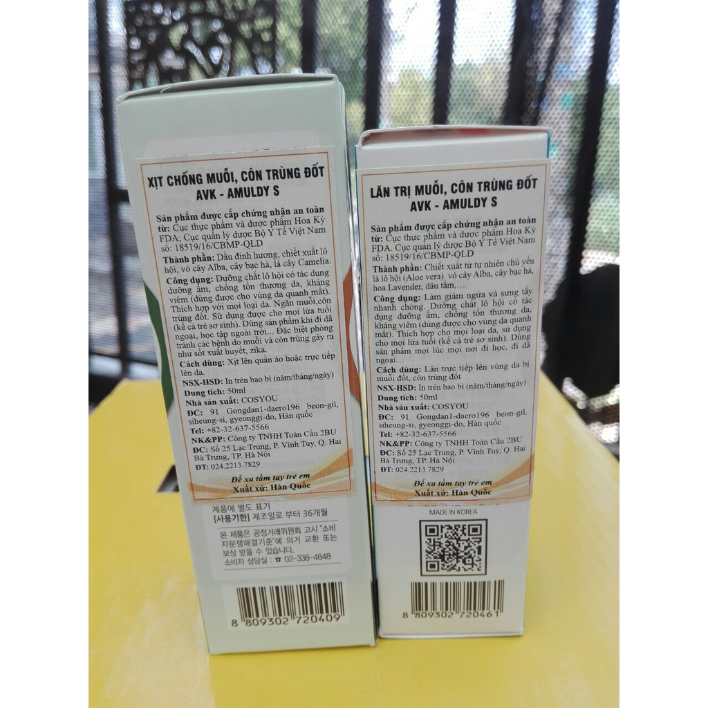 - Lăn trị muỗi, côn trùng đốt AVK- AMULDY S được cấp chứng nhận an toàn từ Cục thực phẩm và dược phẩm Hoa Kỳ FDA, Cục quản lý dược Việt Nam số 17519/16/ CBMP- QLD- Thành phần: chiết xuất từ thiên nhiên chủ yếu là Lô hội, vỏ cây Alba, cây bạc hà, hoa Lavender, dâu tăm...