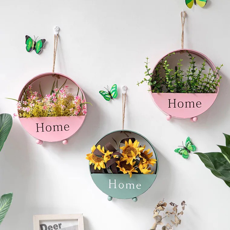 Lẵng hoa treo tường trang trí theo phong cách Châu Âu hiện đại- Thiết kế hình tròn độc đáo với chữ Home sẽ giúp bạn biến những bức tường nhàm chán, tẻ nhạt trong gia đình trở nên sinh động, phong cách hơn