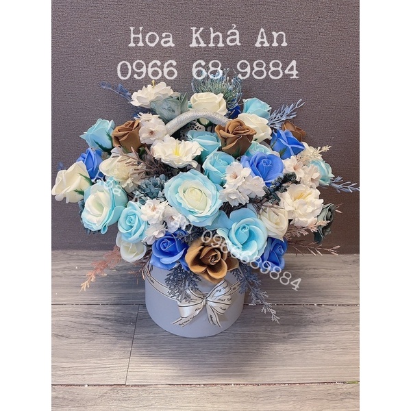 Lẵng hoa sáp mix hoa lụa cao cấp, bền vĩnh cửu. Thiết kế nhà Khả An