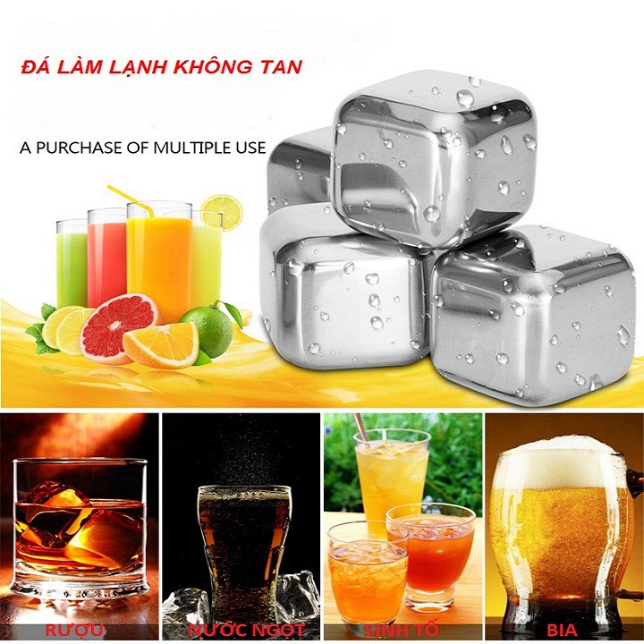 Đá lạnh vĩnh cửu COLLING CUBES thép không gỉ, tặng kèm gắp đá