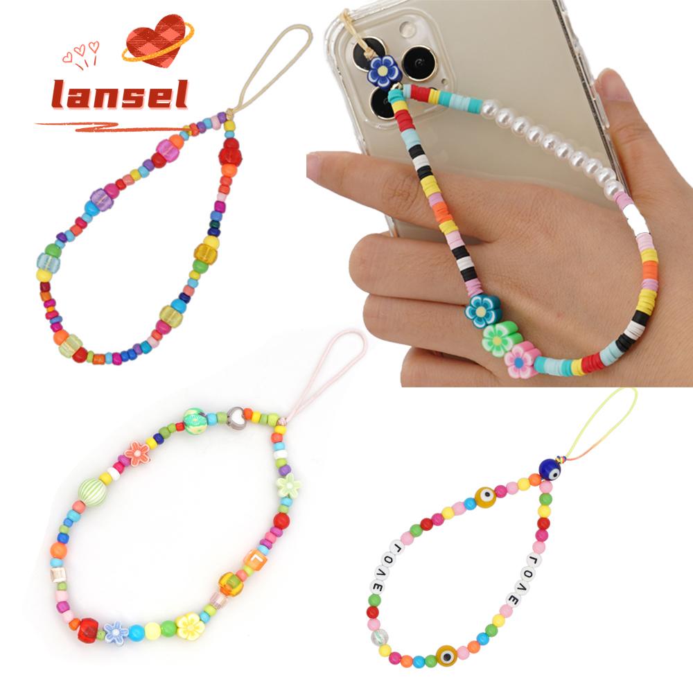 Giới thiệu ❤LANSEL❤ Universal Phone Charm Strap Multi Color Necklace Strap Mobile Chain for Keys Girls Lady Gift Lanyard Phone Case Hanging Cord Smile Pearl Phone Choker