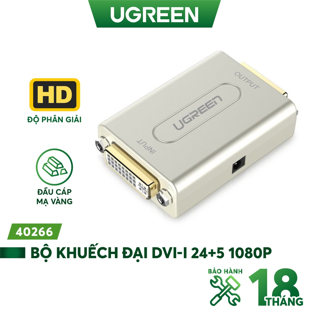 Giới thiệu Bộ lặp + nối dài DVI 1080P độ phân giải cao, vỏ hợp kim, mạ vàng Ugreen 40266 (Bạc)