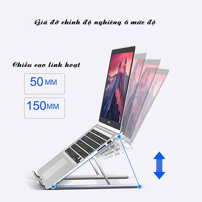 Giá Đỡ Laptop có thể gập lại chất liệu hợp kim nhôm cao cấp,điều chỉnh góc độ Tương thích tất cả các dòng laptop MacBook Pro/Air, HP, DELL, ...