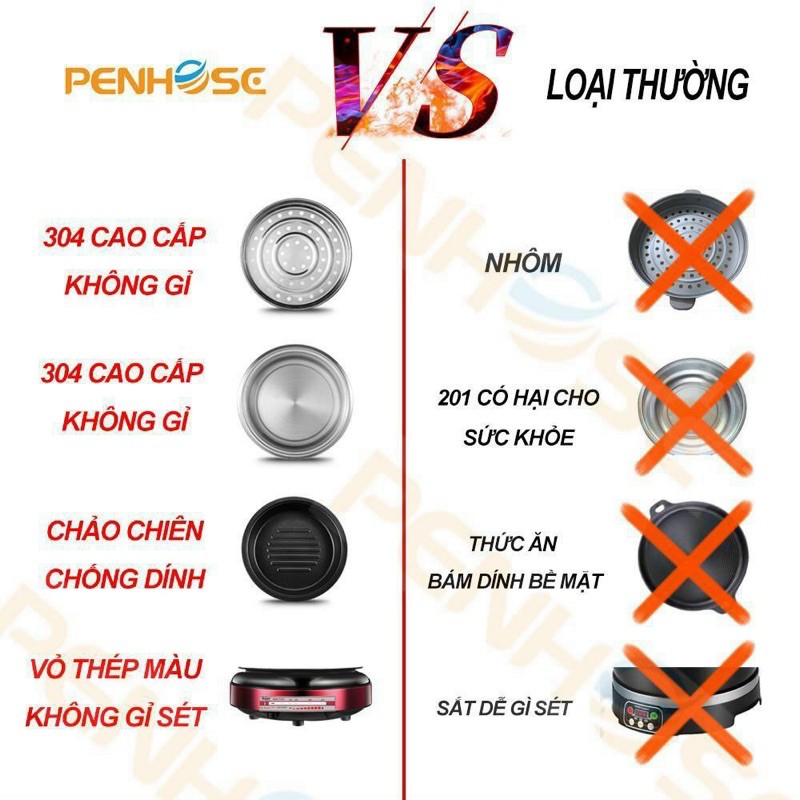 lẩu điện PENHOSE đa năng thái 100% nướng hấp lẩu (hàng chính hãng )
