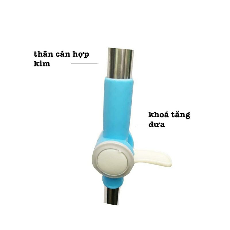 + Thân lau linh hoạt: Thân lau làm bằng inox chống rỉ sét, dày 4mm, cứng và bền, có thể dựng đứng 90 độ hay nằm ngang 180 độ, các khớp nối giúp dễ dàng tăng giảm độ dài của thân lau phù hợp với chiều cao của người sử dụng.