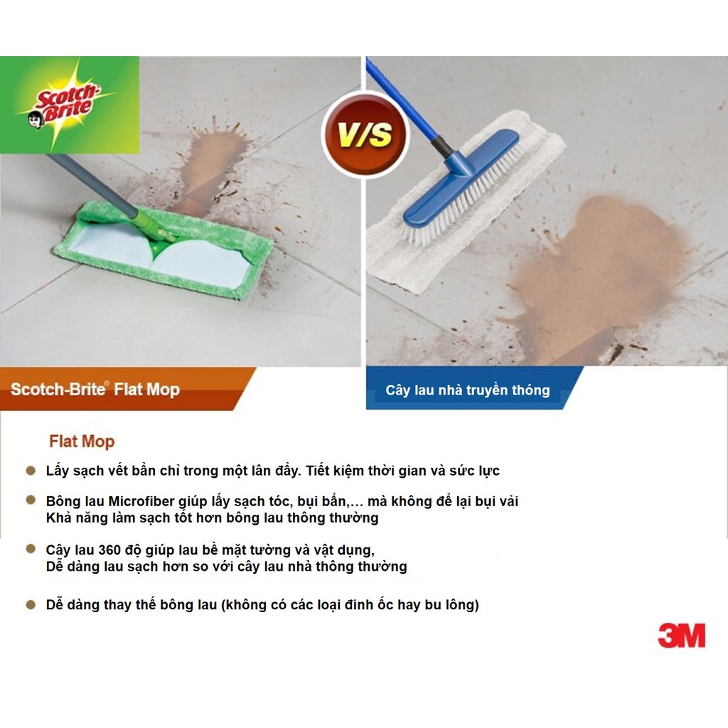 Giới thiệu Cây lau nhà Microfiber cỡ lớn Scotch Brite 3M đa năng, thấm hút nước tốt