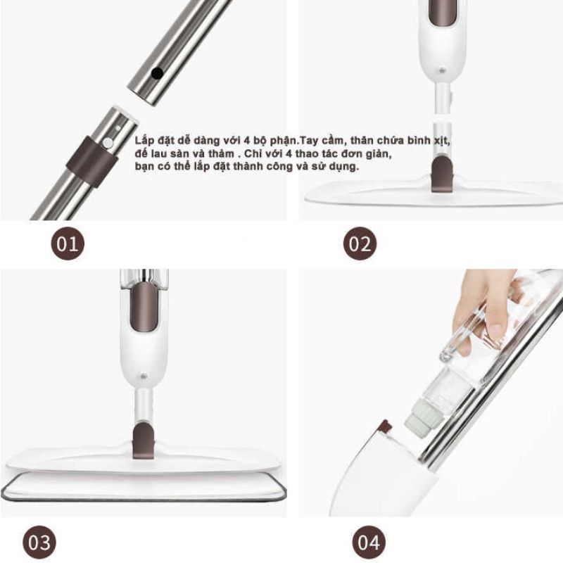 ✔ Chỉ cần gạt tay cầm, cây lau sẽ tự động xịt nước, chất tẩy rửa từ bình chứa có sẵn mà không cần mang theo thùng chứa nước